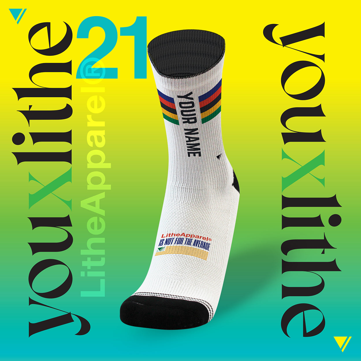 Your bespoke socks. The quality and design of LitheApparel, with your name, your pet's name or your team.