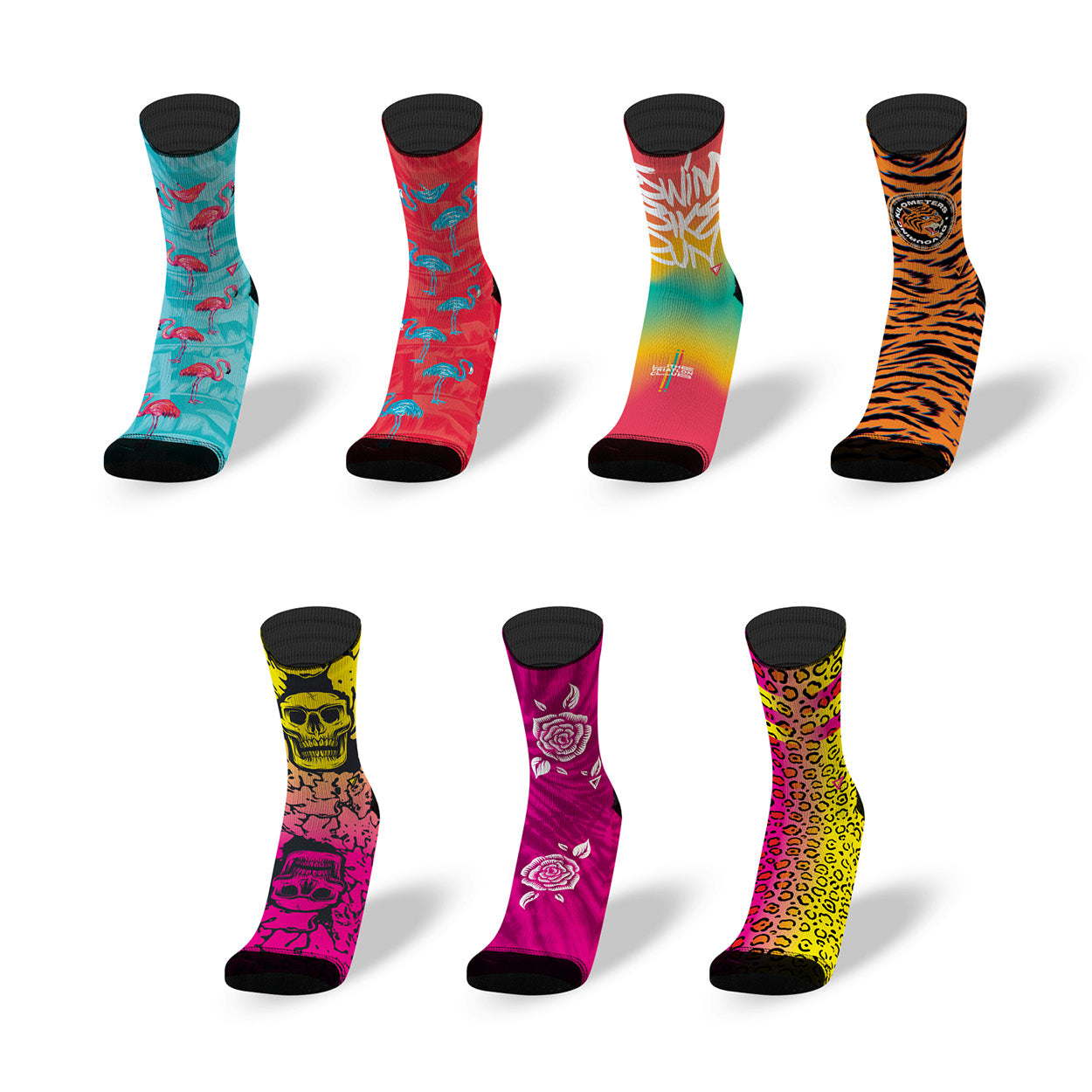 7 colorful socks pairs, one for each day of the week. This is the pack for the people who only thinks about run or ride kilometres. The pack includes: