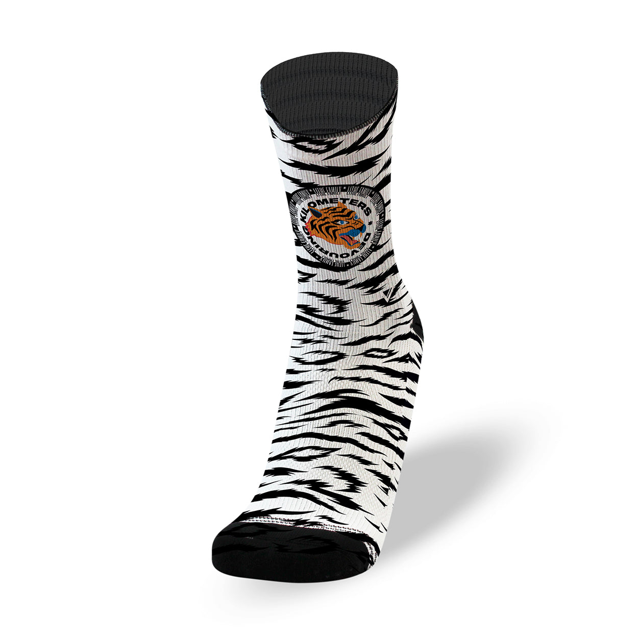 Tiger animal print in black and white. With the LitheApparel Tiger badge: Devouring Kilometers.