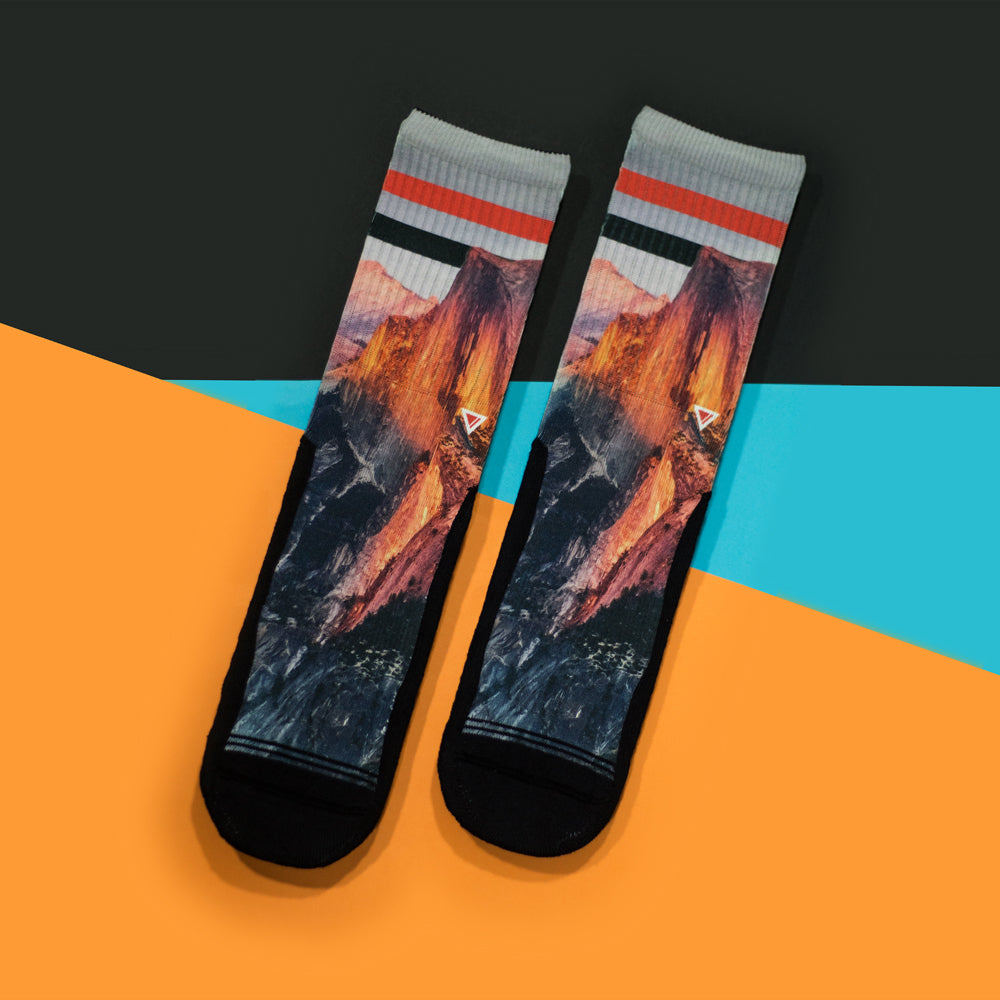 Socks inspired by the nature. Sky, fresh air, clouds, mountains, sun, snow, wind, rocks, fire, water, volcano, climb, descent, summit, ski, snowboard, trekking, trail running... your passion at your feet with these socks! Go out and enjoy!