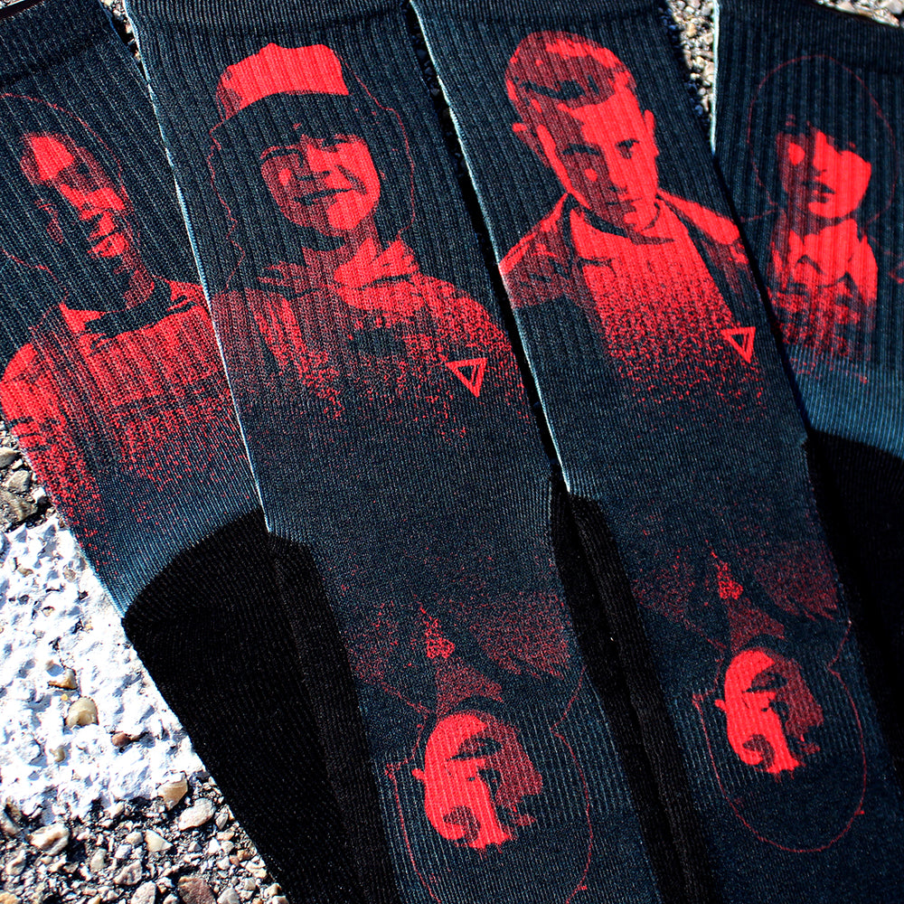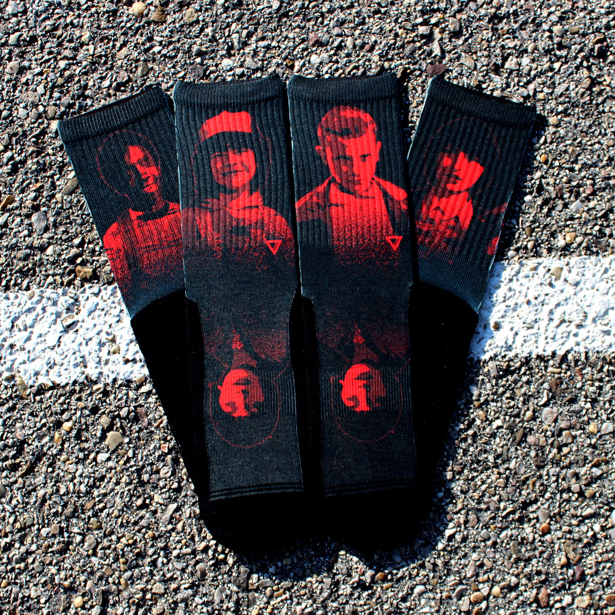 Eleven y Mike, on on foot. Dustin y Lucas, on the other. Will (The upside down) on both. All the Hawkins gang on a pair of Stranger Socks... Stranger Things.