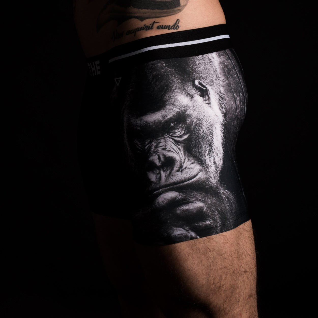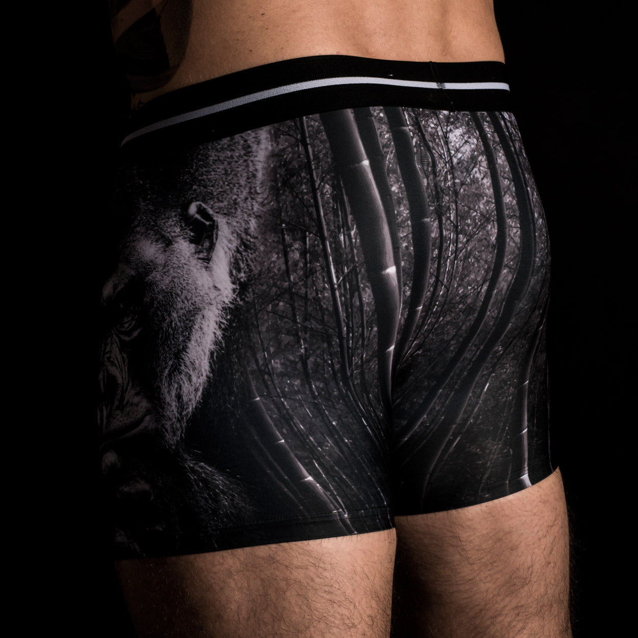 Boldly designed in black and white, the Gorilla boxers are made to endure your day and keep you comfortable no matter what you might be doing. Forget about discomfort on your noble parts, this underwear is bananas.