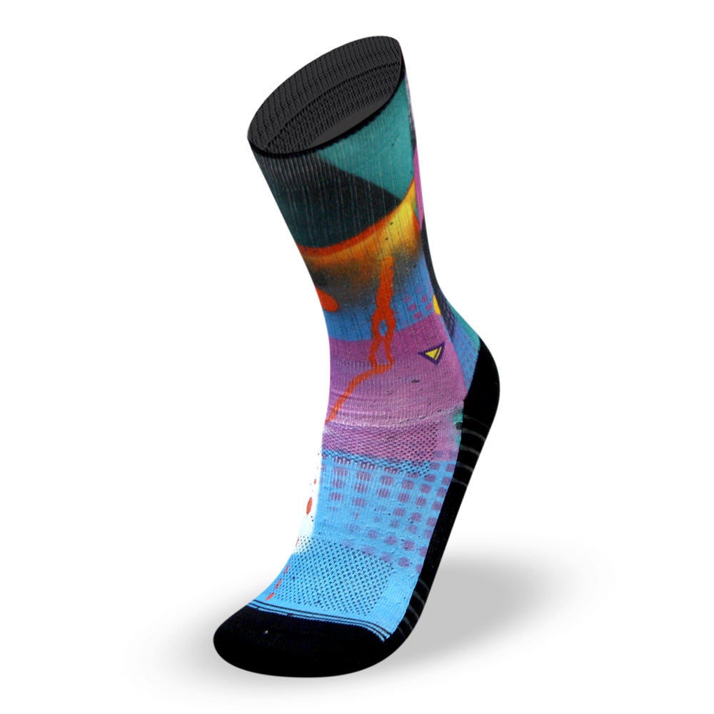 Breathable mesh, cotton cushion and technical fibers to train plus a graffiti to impress in every gym. Urban style for your favourite sport.
