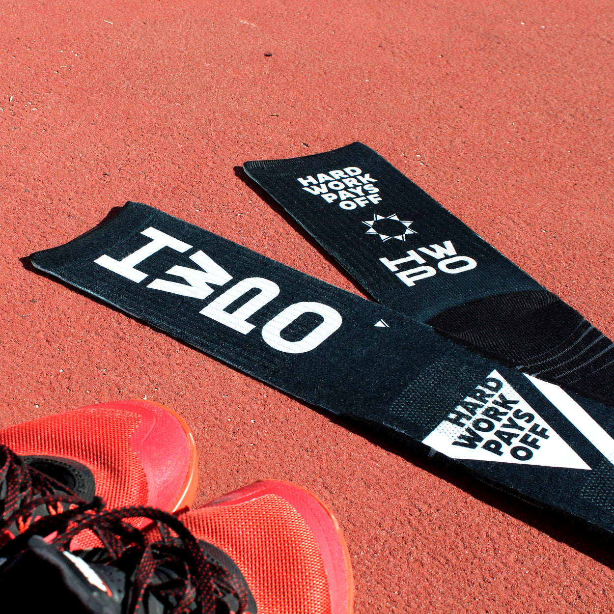 Socks tribute to the CrossFit champion: Mat Fraser. With the classic phrase 'Hard work pays off', a phrase that represents the values of Lithe Apparel at the same time.