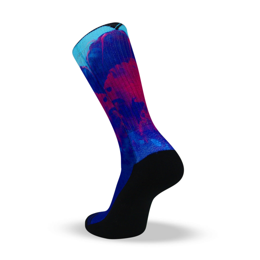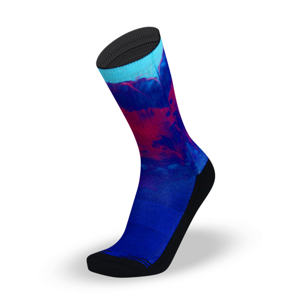 The glowing colors of a jellyfish try to warn about what might happen if touched. L.A. MEDUSA will treat you much more kindly. Soft premium cotton in the sole and CoolMax to make your feet feel awesome under any condition. Brighten your day wearing great socks.