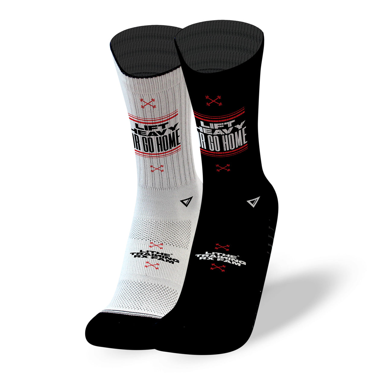 Socks pack with the motto: LIFT HEAVY OR GO HOME.