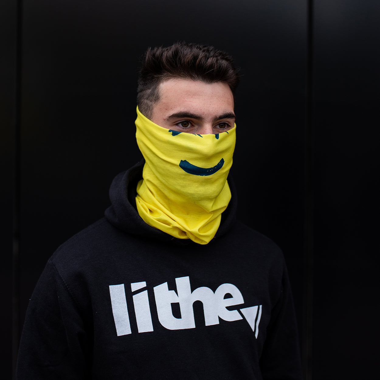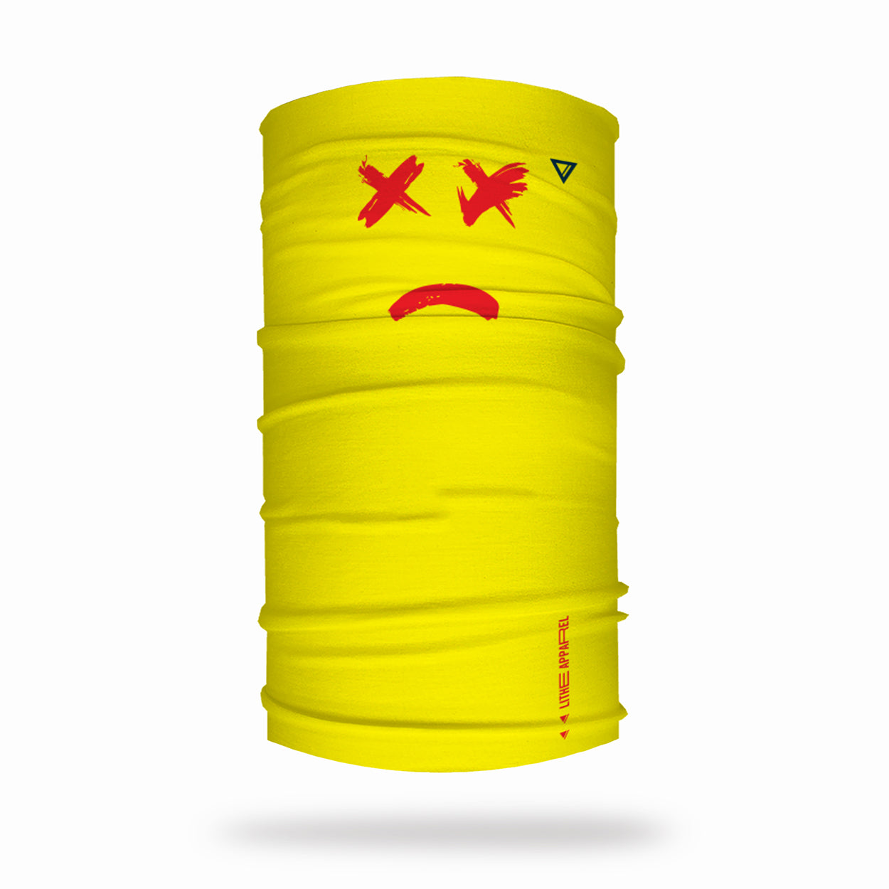 Yellow neck warmer. On one side with a smiley and on the other a non-smiley. What mood are you today?