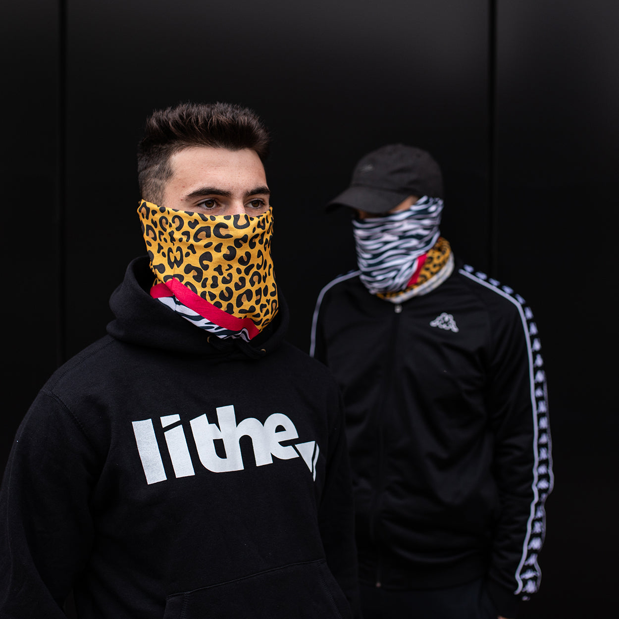Neck warmer with our classic mix of animal print: leopard and zebra. Unmatched. Matching socks and headband available.