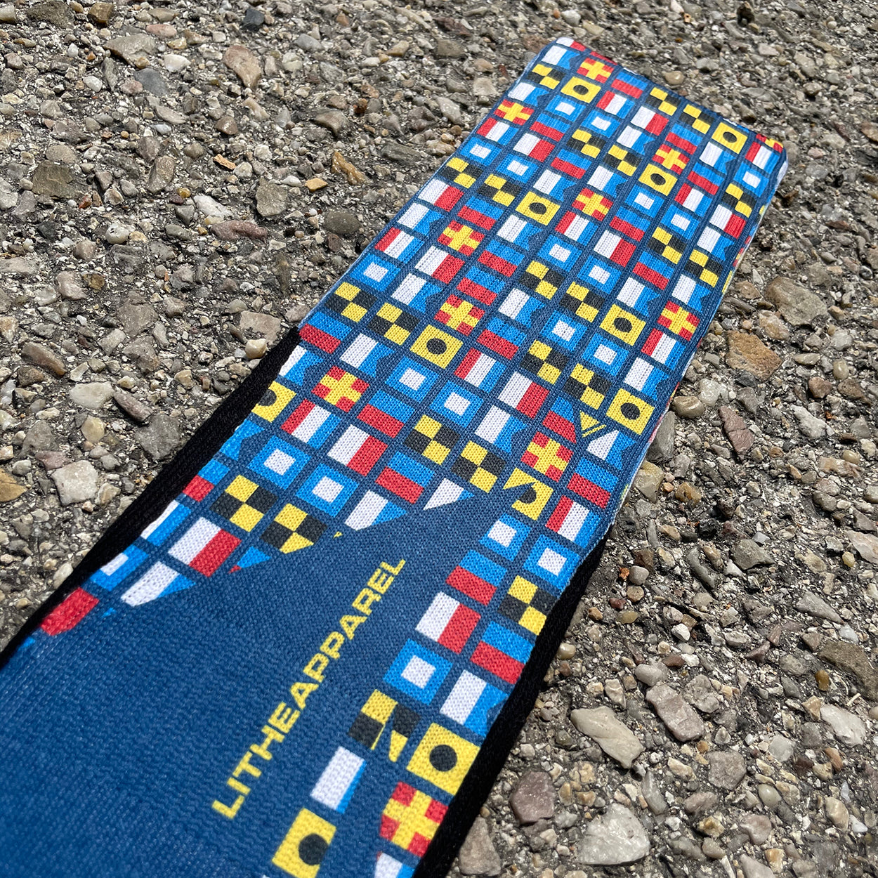 Socks with nautical flags. In nautical there is a whole code that defines the meaning of the flags of the ships.
